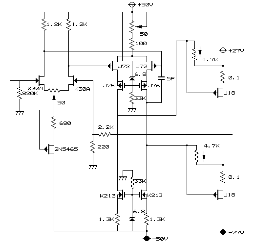 完全対称アンプになりますが、MJ1994年9月号にでていた参考図を
