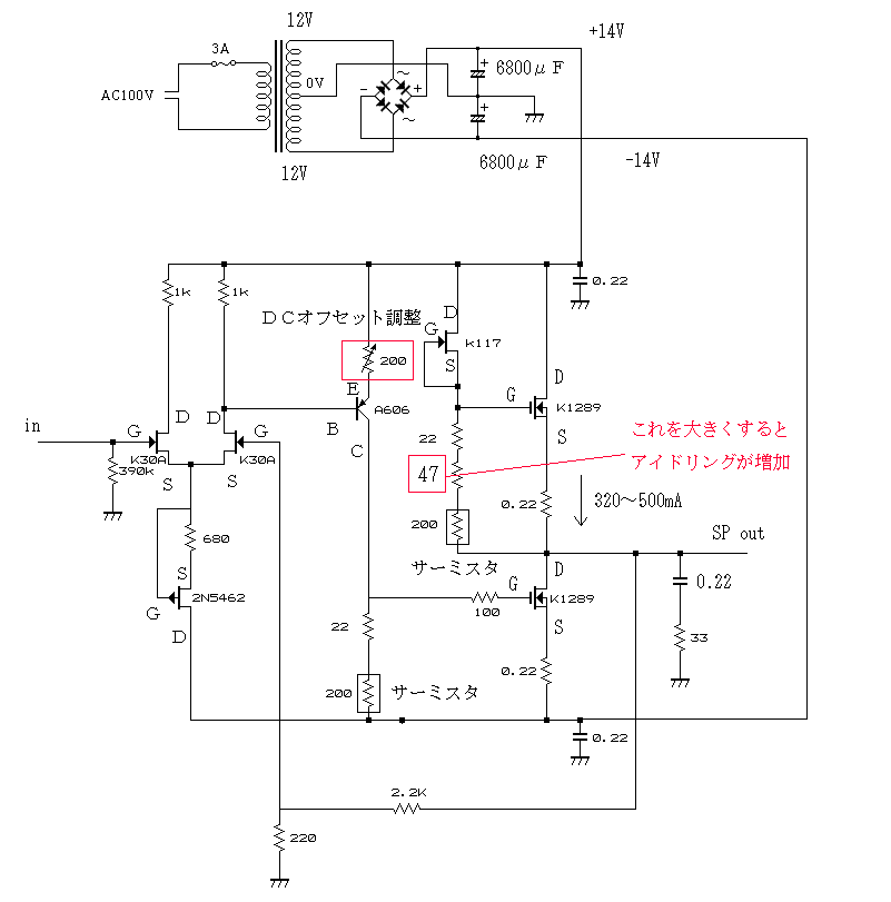 A級アンプ用です。これによりA級アンプのアイドリングを大きくすることができます。