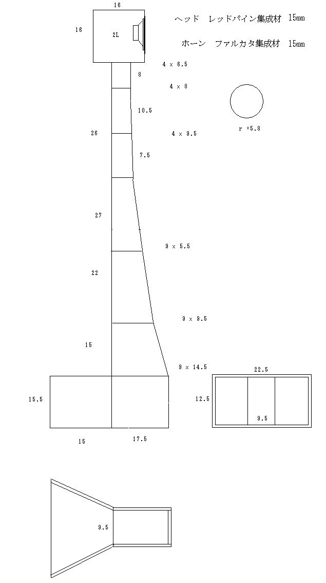 コニカルを組み合わせてエクスポーネンシャルに近いホーンにしました。中高域もれ