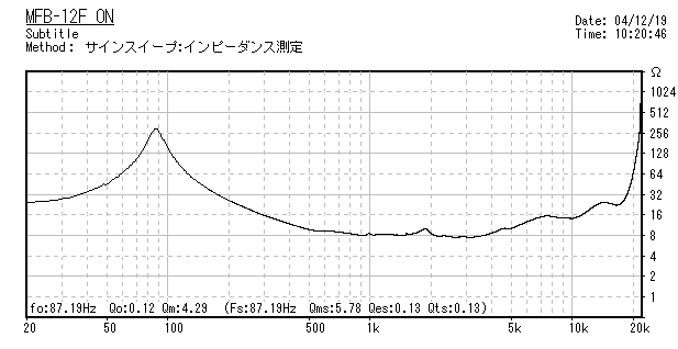 Qts=0.13これがMFBにより駆動力が強大化した姿であるといえます。こうしてみるとすざまじい
