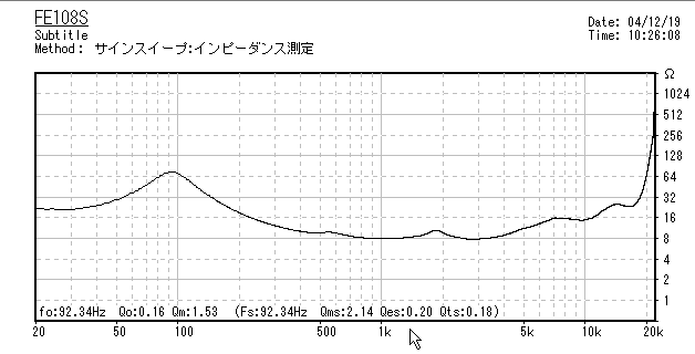 Qts=0.18! FE108Sもひけをとらないようです。さすがMFB出現前の時代のフルレンジの頂点
