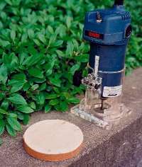 BC10を穴にあてはめてみると穴がやや小さいようです。まずトリマーの刃を最長にして、