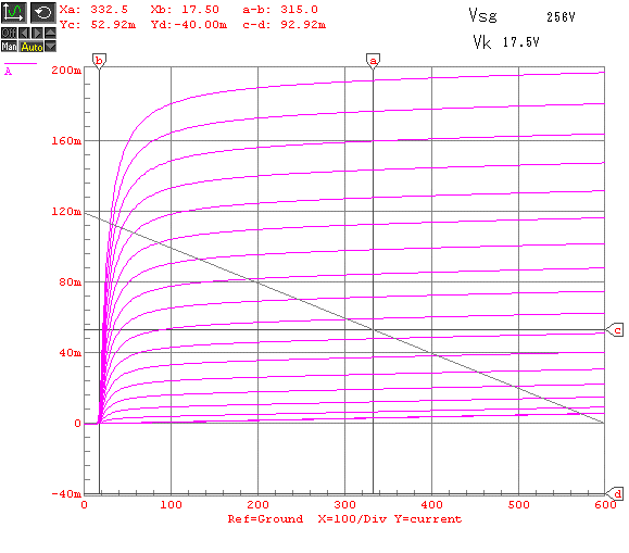 このようにシミュレータだとスクリーングリッド電圧も、自己バイアスでのカソード電位
