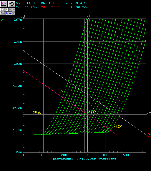 アイドリングがやや減って、グリッドを−40Vから0Vまでドライブしたとき、プレート電流は