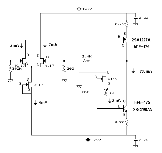 終段のアイドリング電流が望む値になるようなK117を初段定電流用にする。