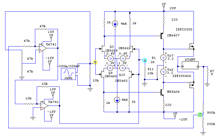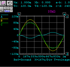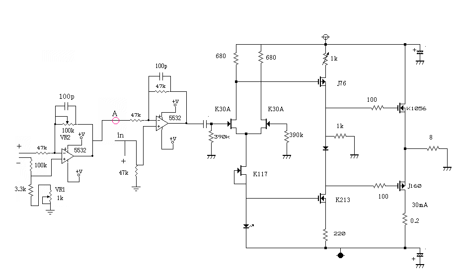 まずこのような回路で、差信号を作り(この場合はうまくゆく)、あとは適当な副アンプのゲイン