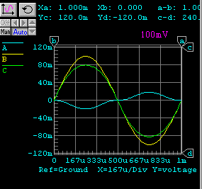 主アンプと副アンプのゲインが同じ場合の波形。(注 ATANVのレンジが狭いので、ごく小さい信号