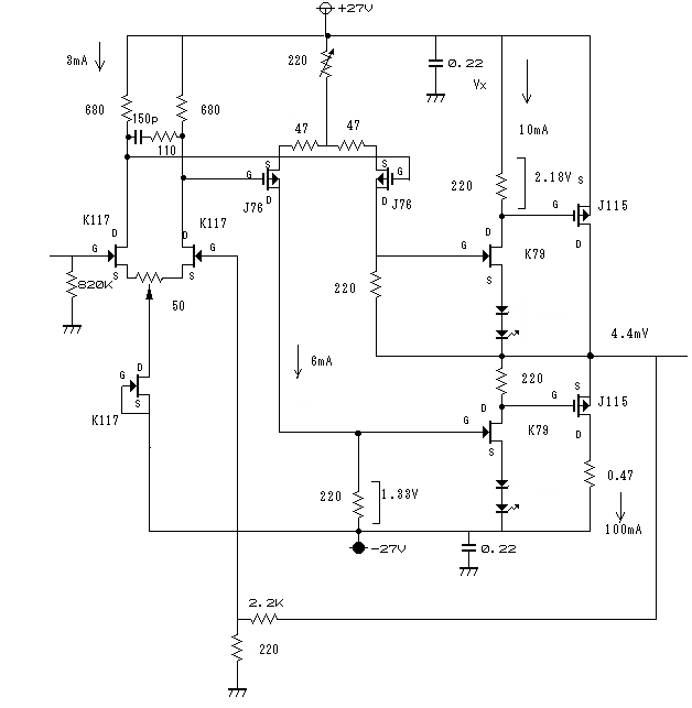 音はV−FETといって良いような音がしている。二次歪が出放題だが選別すれば何とかなりそう。