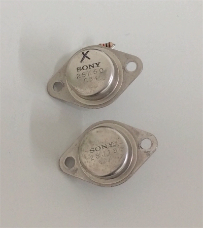 手持ちの終段石を繋いでみる。オフセットが105mV、アイドリングは調整して100mAくらいにした。オフセットが大きいが正常動作