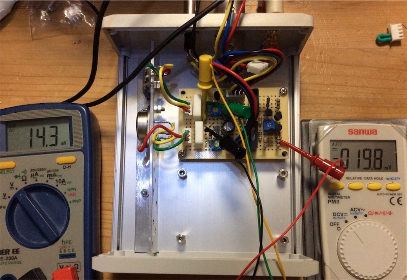 一晩つけっぱなしにしたら100mVくらいになっていたが、出力段をつければ何とかなりそうだ。