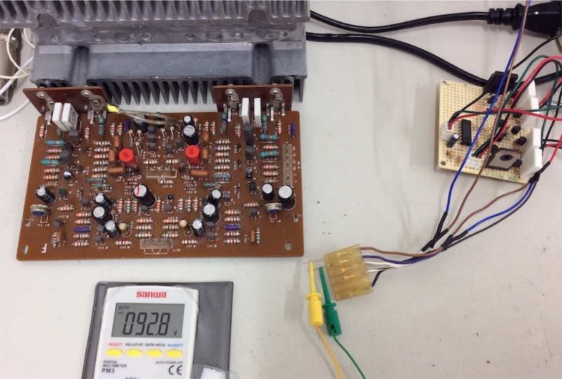 次にRchで動作するか見た。アイドリングの挙動がおかしいので(トランジスタ一石の保護回路が作動しているらしい)、アイドリング