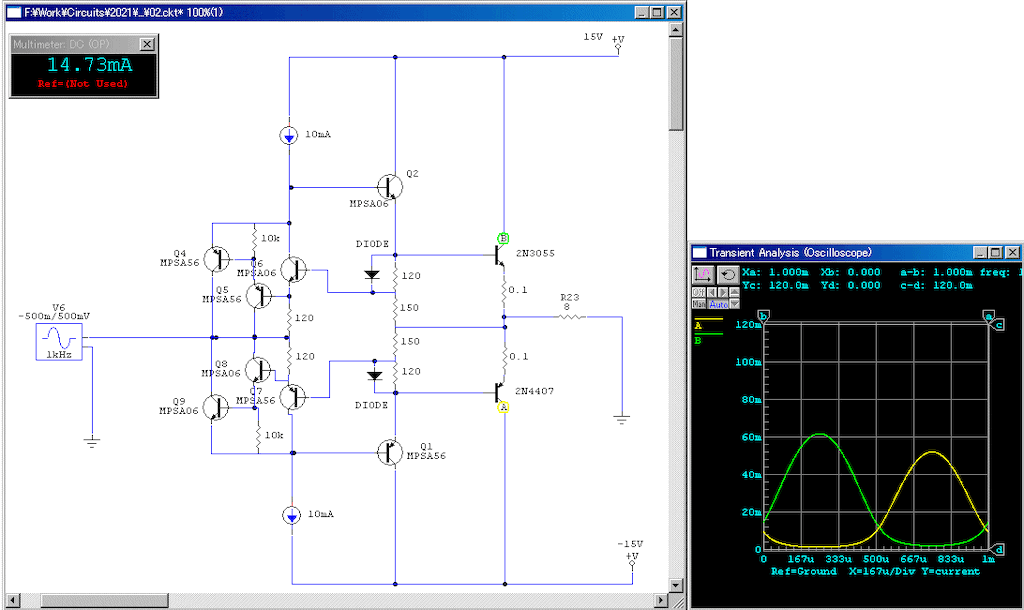 アイドリング130mA、DCオフセット10.8mVである。