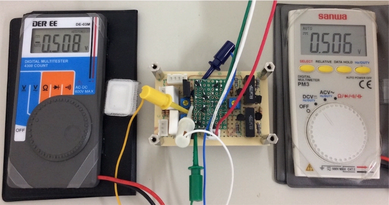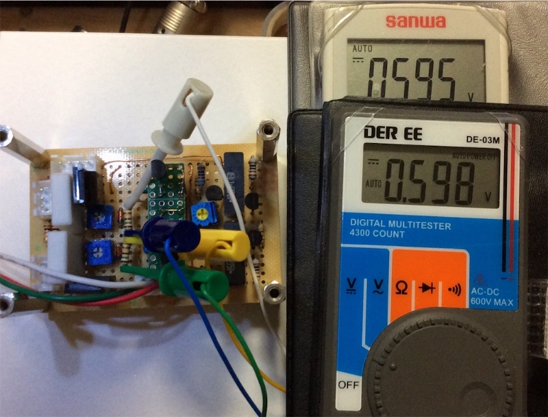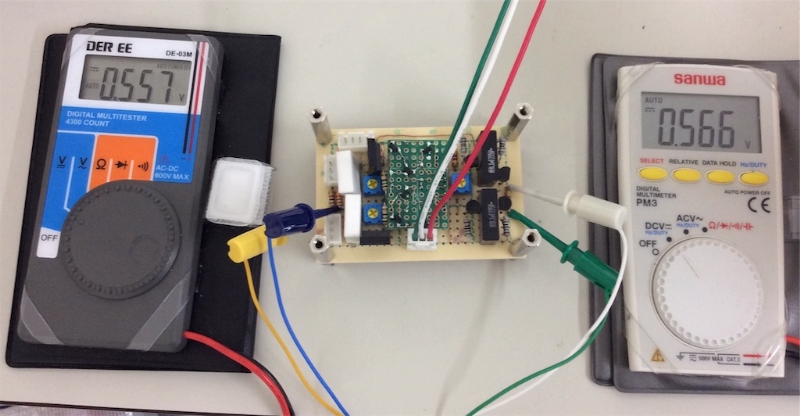 配線が出来たのでダイオード4個のバイアスで動作をチェックする。