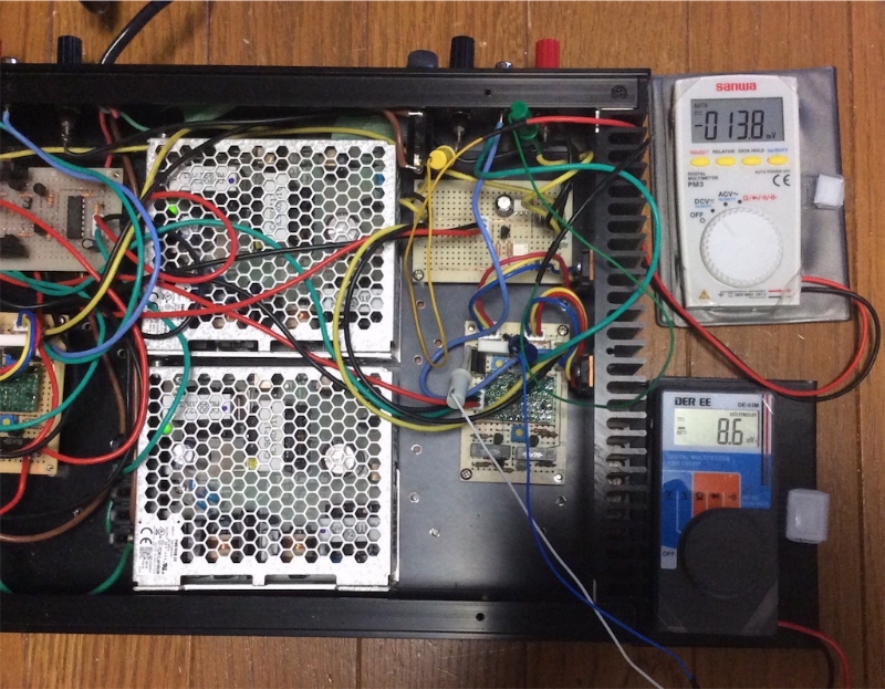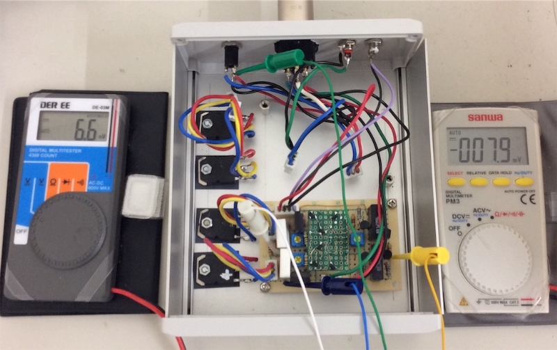 終段をつないで確認する。アイドリング66mA、オフセット7.9mVとなった。