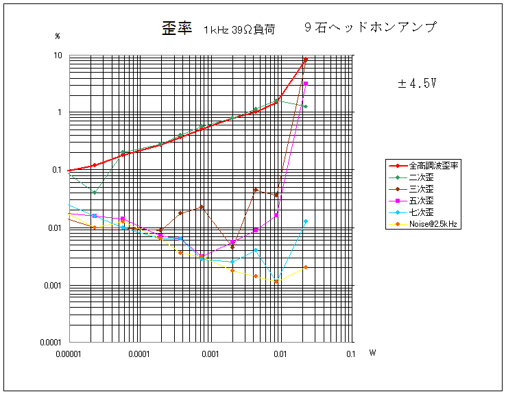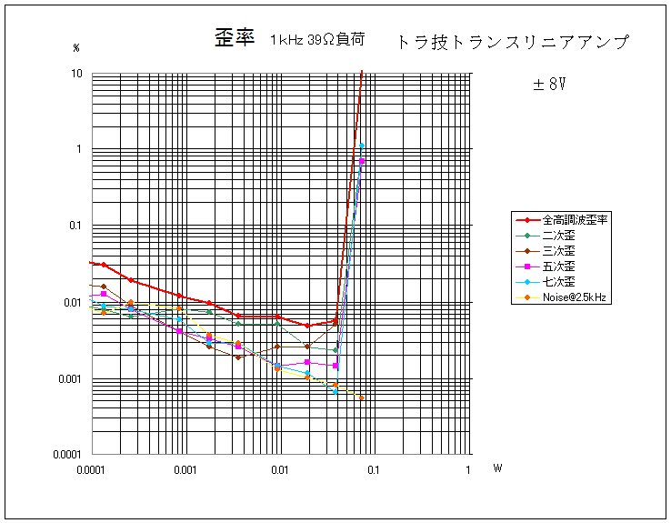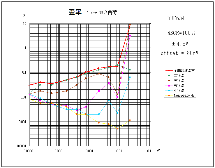 ものすごい低歪率。チップトランジスタのhFEを二桁まで揃えたのが大きいか。